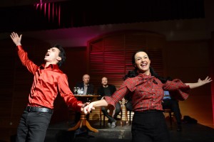 Kerényi Miklós Máté és Dancs Annamari operett részletet ad elő a Híres operettek című CD- és könyvsorozat első kötetének sajtóbemutatóján a Budapesti Operettszínházban 2013. február 20-án. Mögöttük Gazsó L. Ferenc, a Médiaszolgáltatás-támogató és Vagyonkezelő Alap (MTVA) tartalom-előállítási vezérigazgató-helyettese (b) és Kerényi Miklós Gábor, a Budapesti Operettszínház főigazgatója (j).