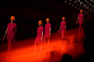 London Fashion Week London, 2013. február 19. Egy modell sétál a brit divattervező Jasper Conran kollekciójának bemutatóján 2013. február 16-án a London Fashion Weeken, a Somerset House-ban. A fotó többszörös expozicióval készült. MTI Fotó: Kollányi Péter