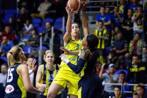 Sopron, 2013. január 16. Jelena Milovanovic, a Sopron játékosa (9) kosárra dob az Uniqua Euroleasing Sopron – Fenerbahce női Euroliga kosárlabda mérkőzésen, a Soproni MKB arénában 2013. január 16.-án. A török csapat 74-69-re megnyerte a mérkőzést. MTI Fotó: Nyikos Péter